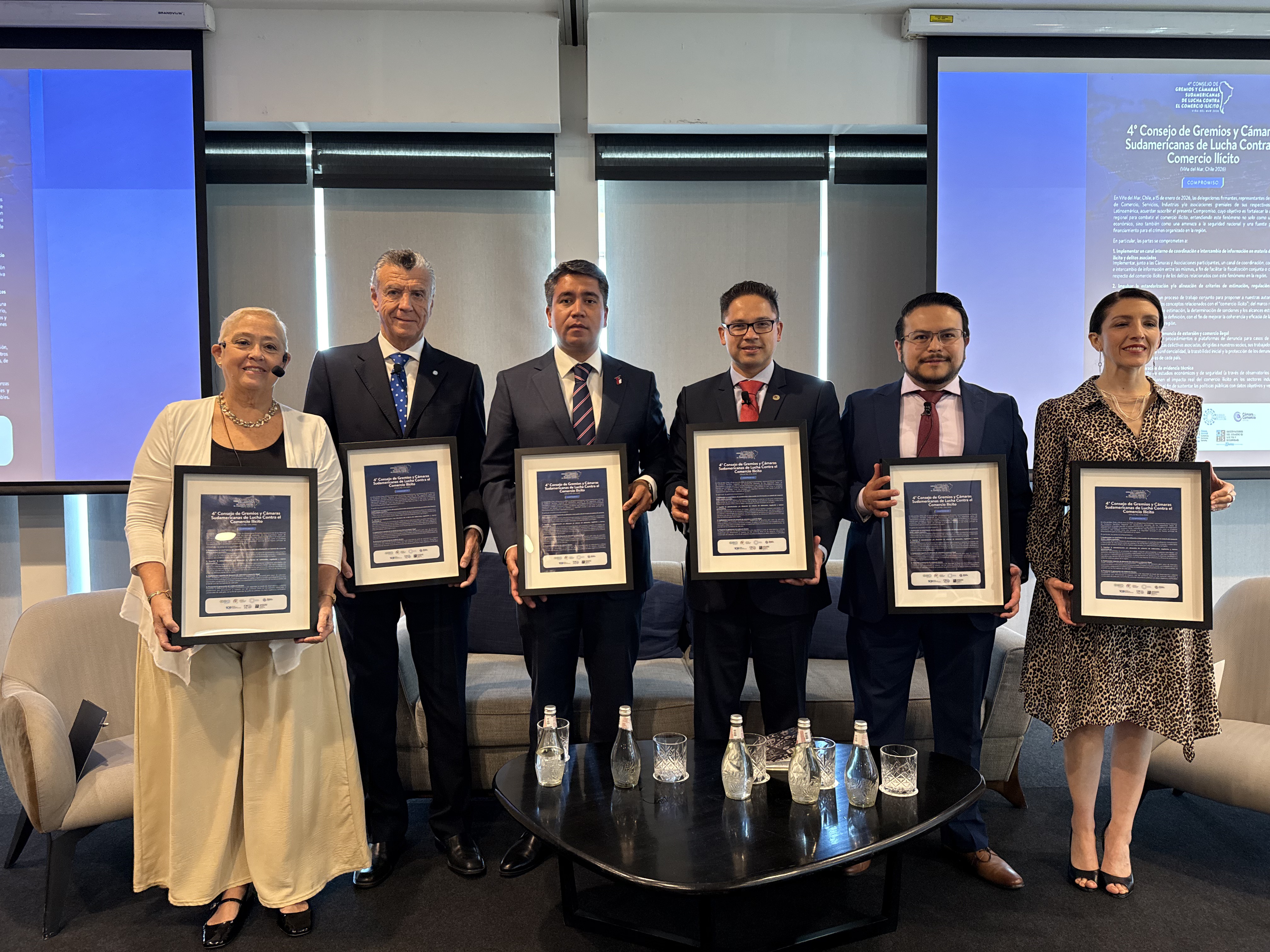 En el seminario participaron delegaciones de la Sociedad Nacional de Industrias de Perú; la Cámara Argentina de Comercio y Servicios (CAC); la Cámara Nacional de Industrias de Bolivia; la Cámara de Industrias y Producción de Ecuador y la Cámara de Comercio de Ambato, junto a representantes de la Cámara Nacional de Comercio, consolidando un espacio de diálogo y coordinación regional frente a un problema que afecta transversalmente a las economías y a la seguridad de los países de Sudamérica.
